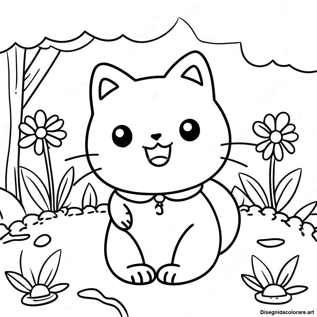 Scarica il PDF Stampabile di Chococat In Un Giardino Da Colorare
