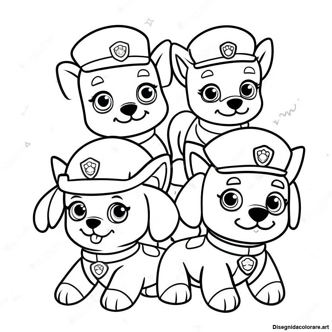 Cuccioli Della Paw Patrol Con Cappelli Di Babbo Natale Pagina Da Colorare