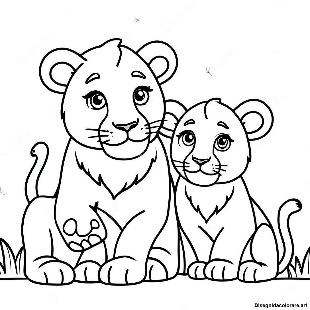 Scarica il PDF Stampabile di Disegno Da Colorare Della Famiglia Di Cuccioli Di Leone