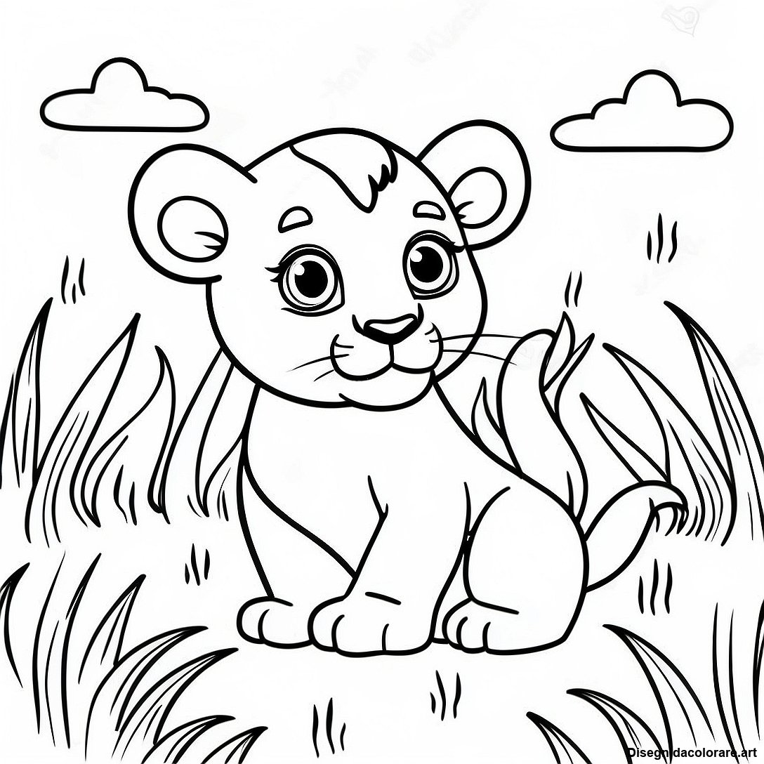 Scarica il PDF Stampabile di Disegno Da Colorare Di Cucciolo Di Leone Carino Nell'erba