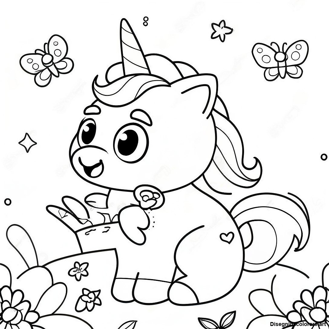 Pagina da Colorare Alicorno Carino con Criniera Scintillante
