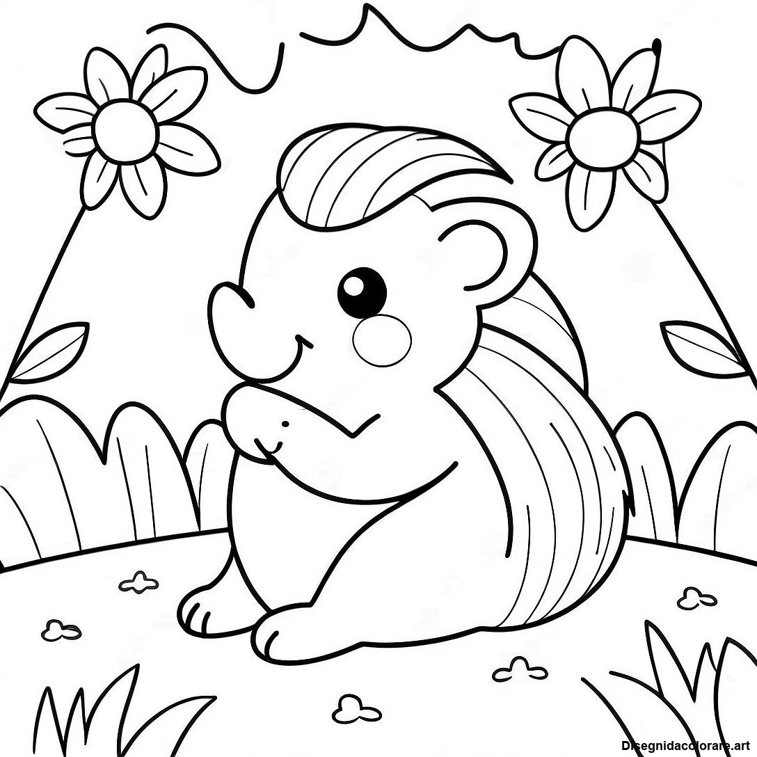 Disegno Da Colorare Di Un Riccio Carino In Un Giardino Fiorito