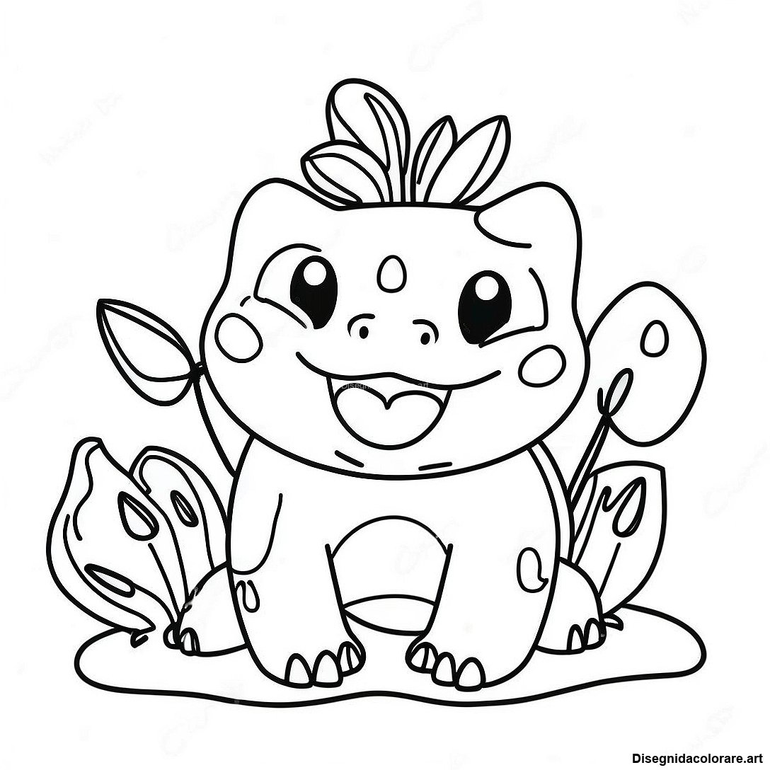 Scarica il PDF Stampabile di Felice Bulbasaur Con Un Grande Sorriso Da Colorare