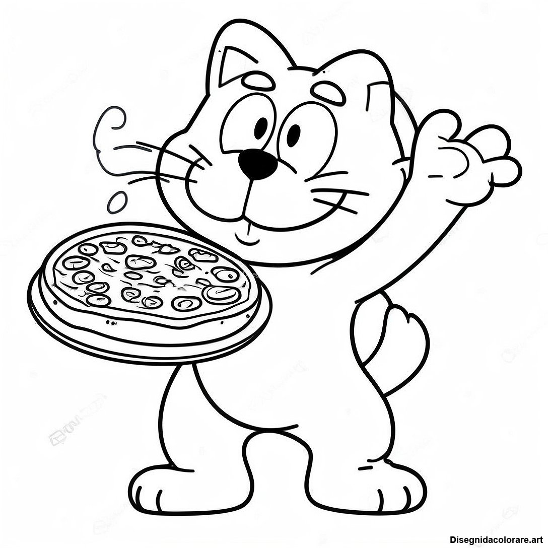 Scarica il PDF Stampabile di Garfield Con Una Pizza Da Colorare