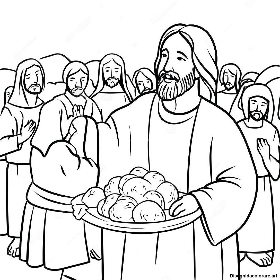 Scarica il PDF Stampabile di Gesù Che Nutre I 5000 Da Colorare