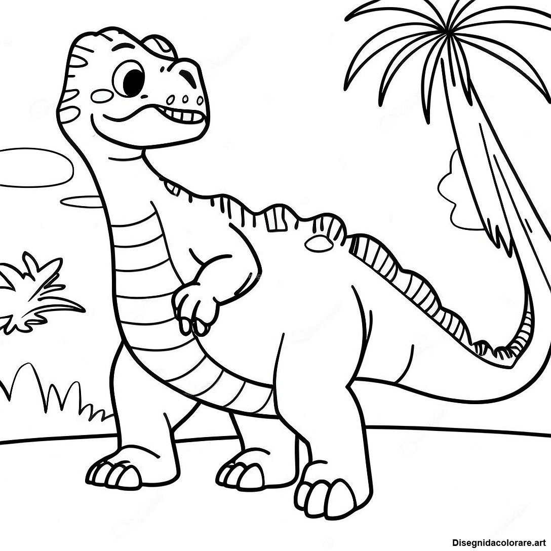Pagina da colorare di un T Rex felice che gioca con gli amici