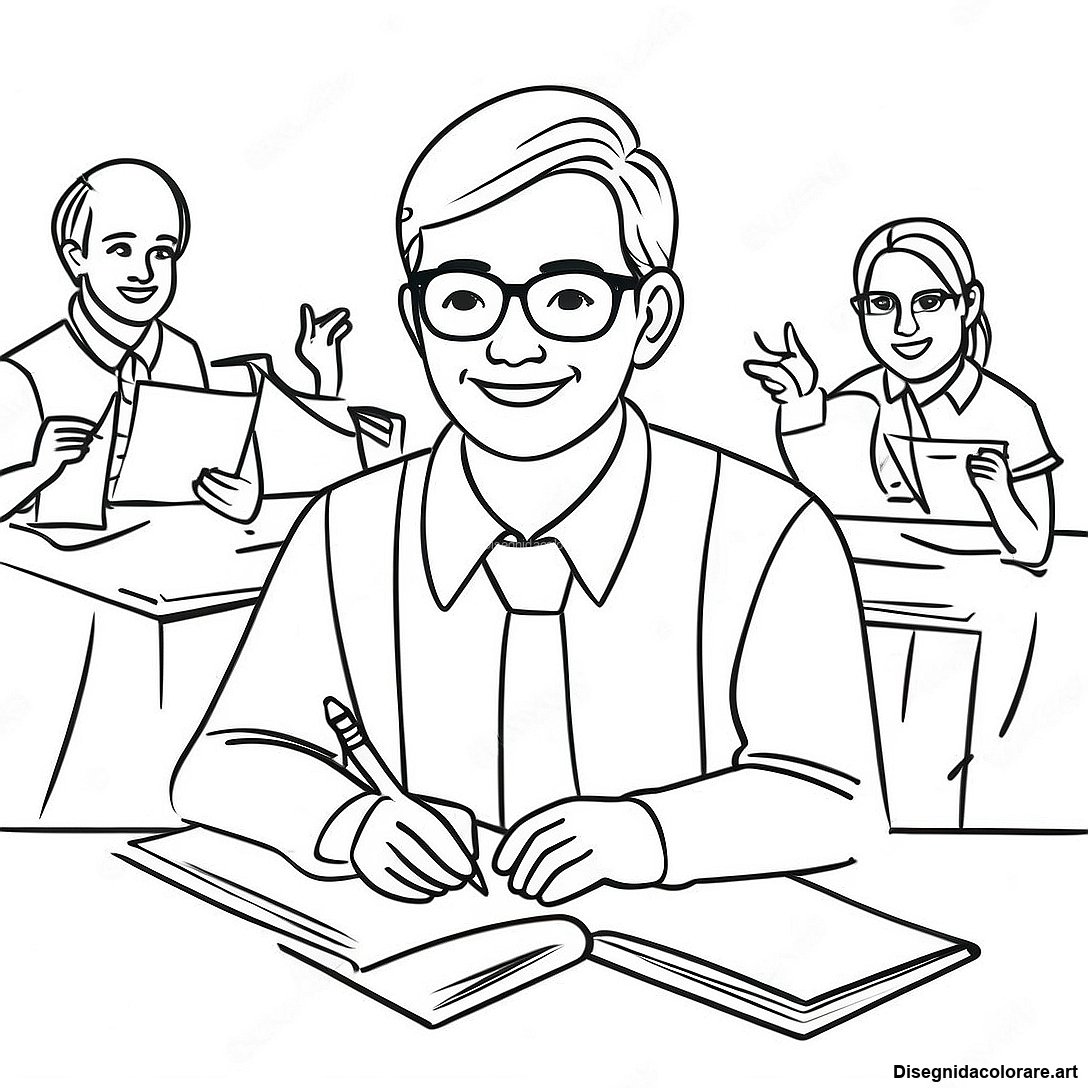 Scarica il PDF Stampabile di Insegnante Amichevole Con Studenti Da Colorare
