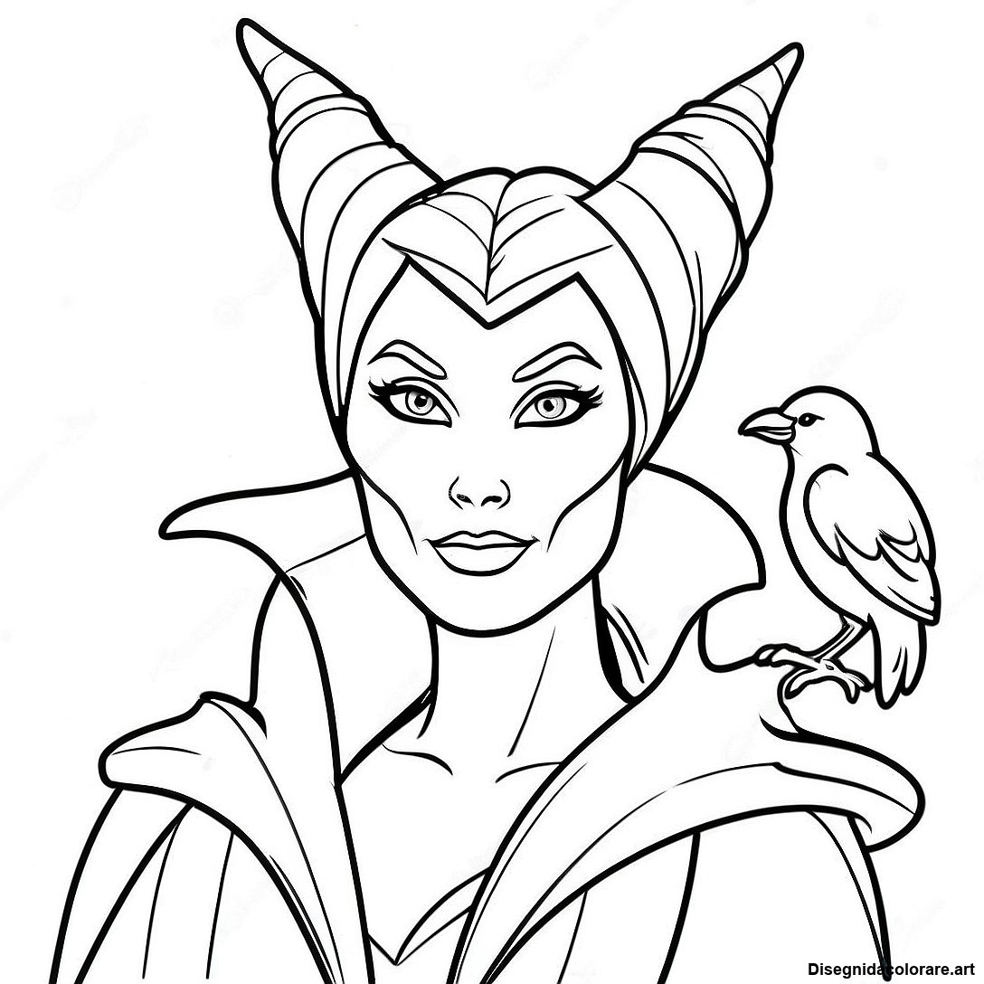 Malefica Con Corvo Disegno Da Colorare