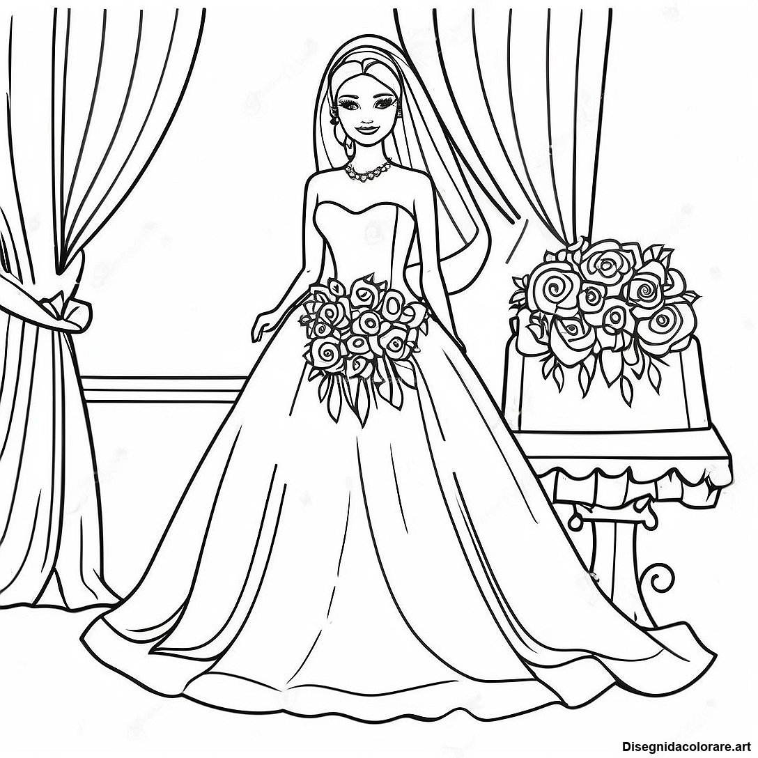 Scarica il PDF Stampabile di Pagina Da Colorare Barbie Sposa