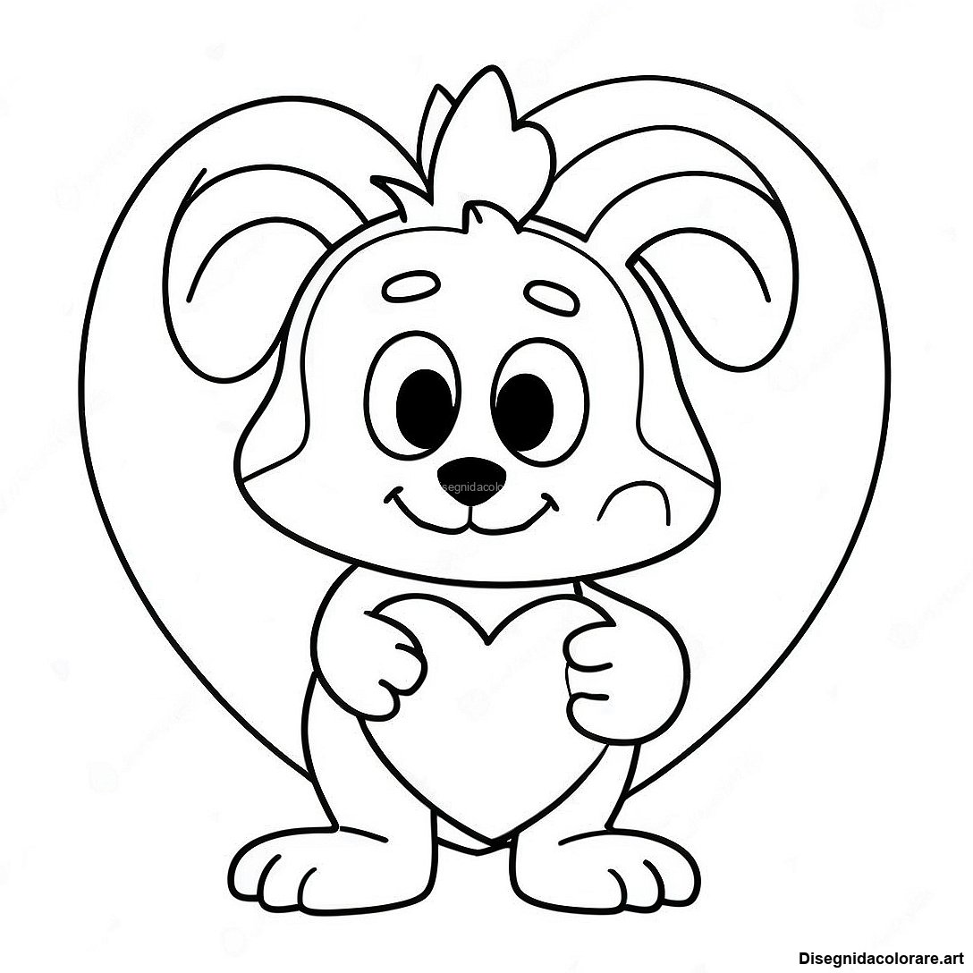 Scarica il PDF Stampabile di Pagina Da Colorare Bluey Con Un Cuore