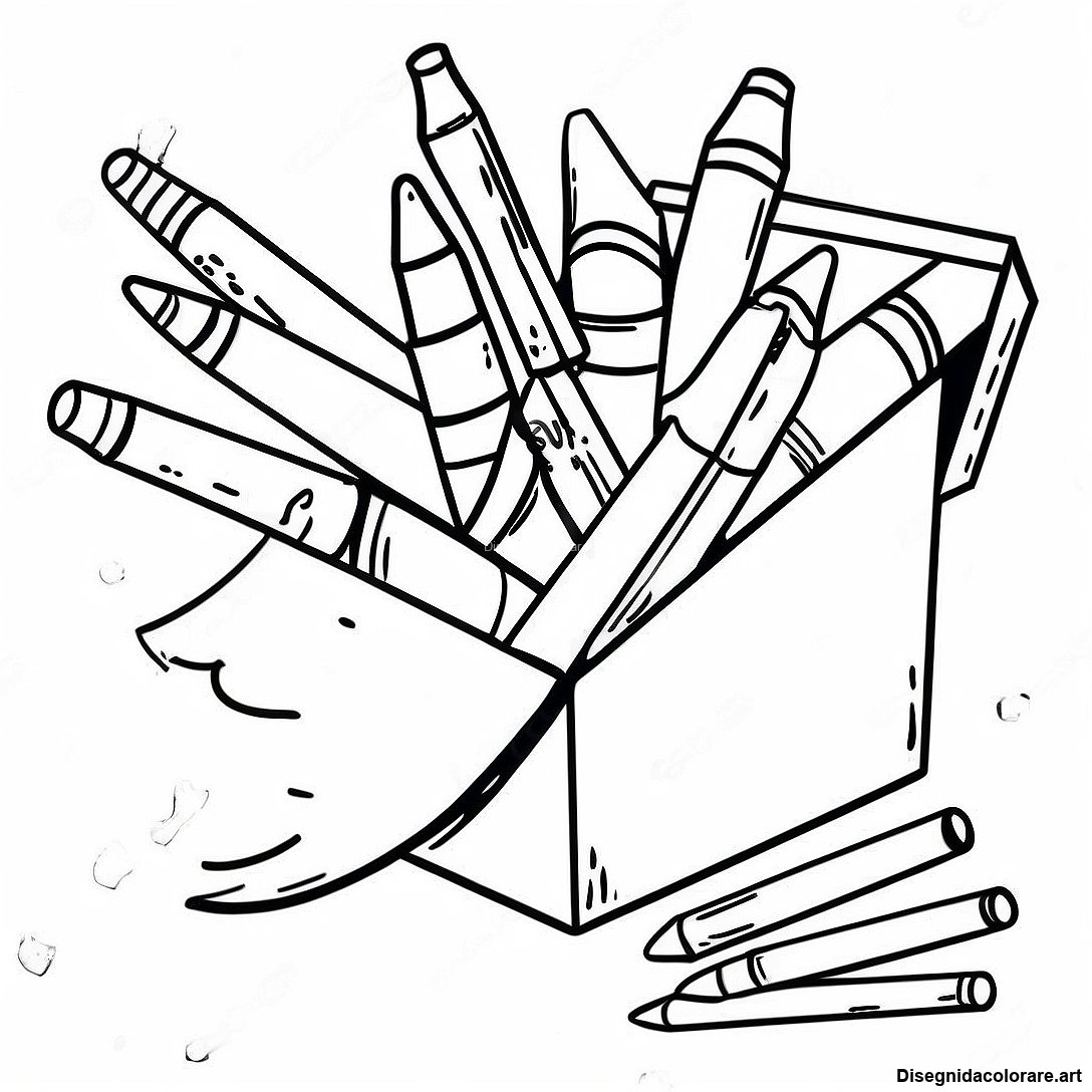 Scarica il PDF Stampabile di Pagina Da Colorare Con Una Scatola Di Pastelli Fantasiosa