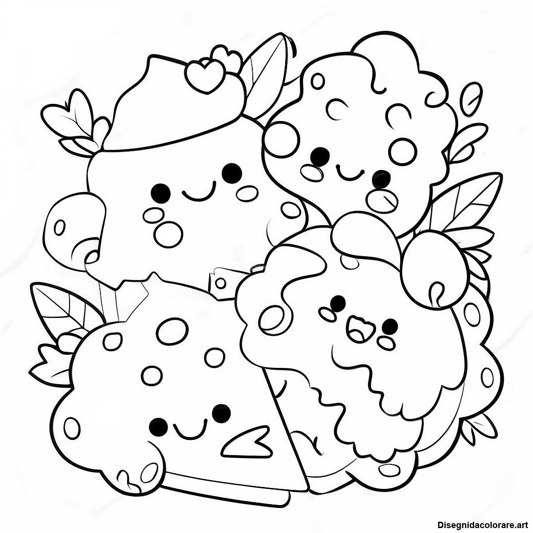 Scarica il PDF Stampabile di Pagina Da Colorare Degli Adorabili Amici Cibo Num Noms