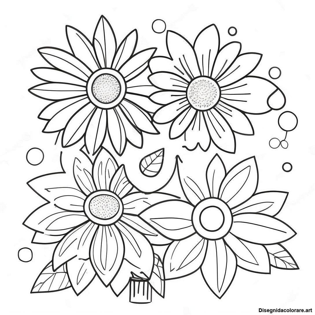 Scarica il PDF Stampabile di Pagina Da Colorare Dei Fiori Colorati Che Sbocciano