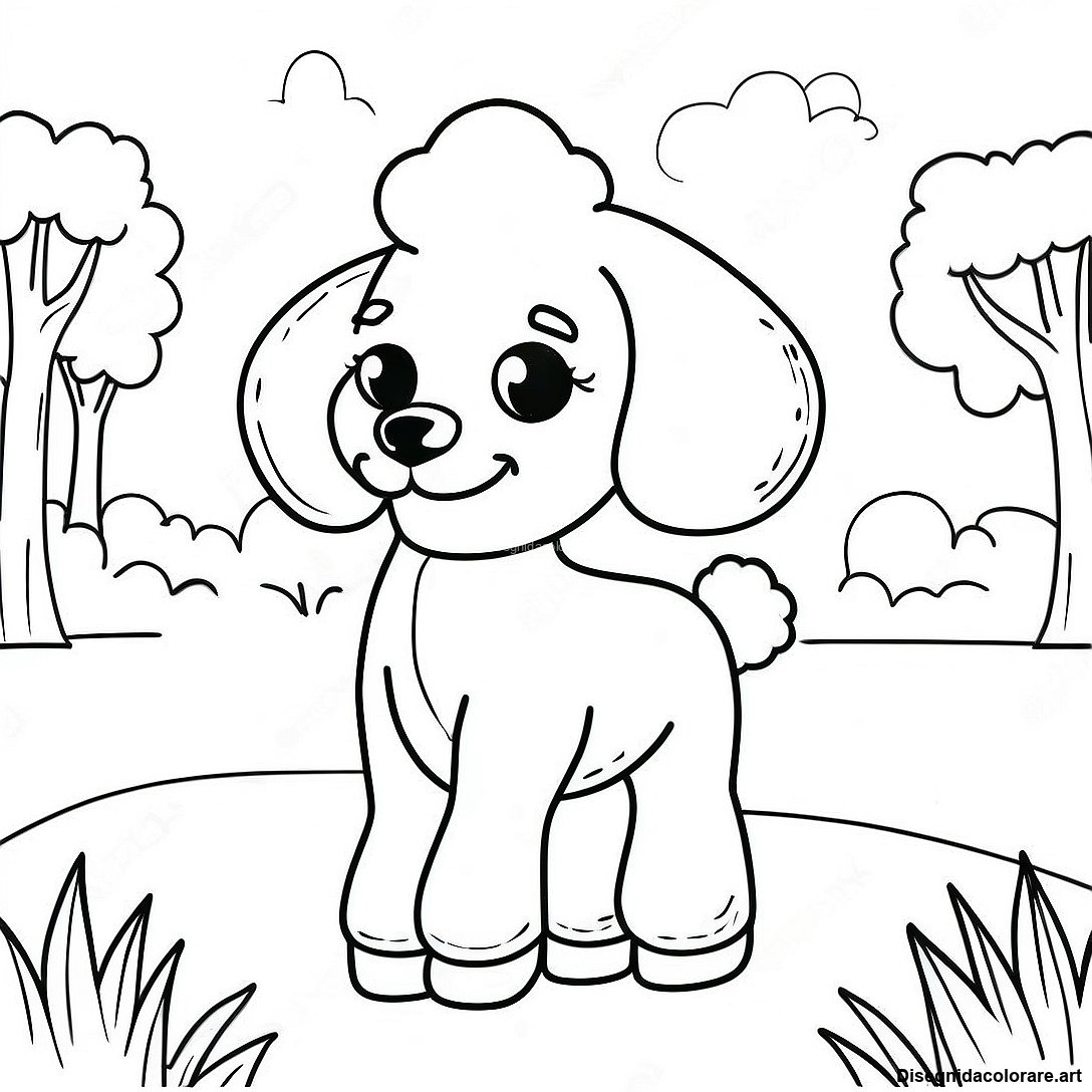 Scarica il PDF Stampabile di Pagina Da Colorare Del Barboncino Che Gioca Nel Parco