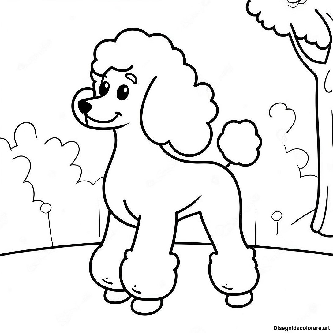 Scarica il PDF Stampabile di Pagina Da Colorare Del Barboncino Che Gioca Nel Parco