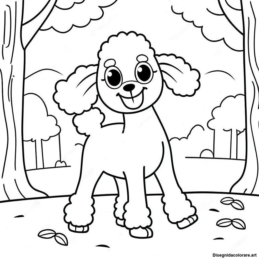 Scarica il PDF Stampabile di Pagina Da Colorare Del Barboncino Che Gioca Nel Parco