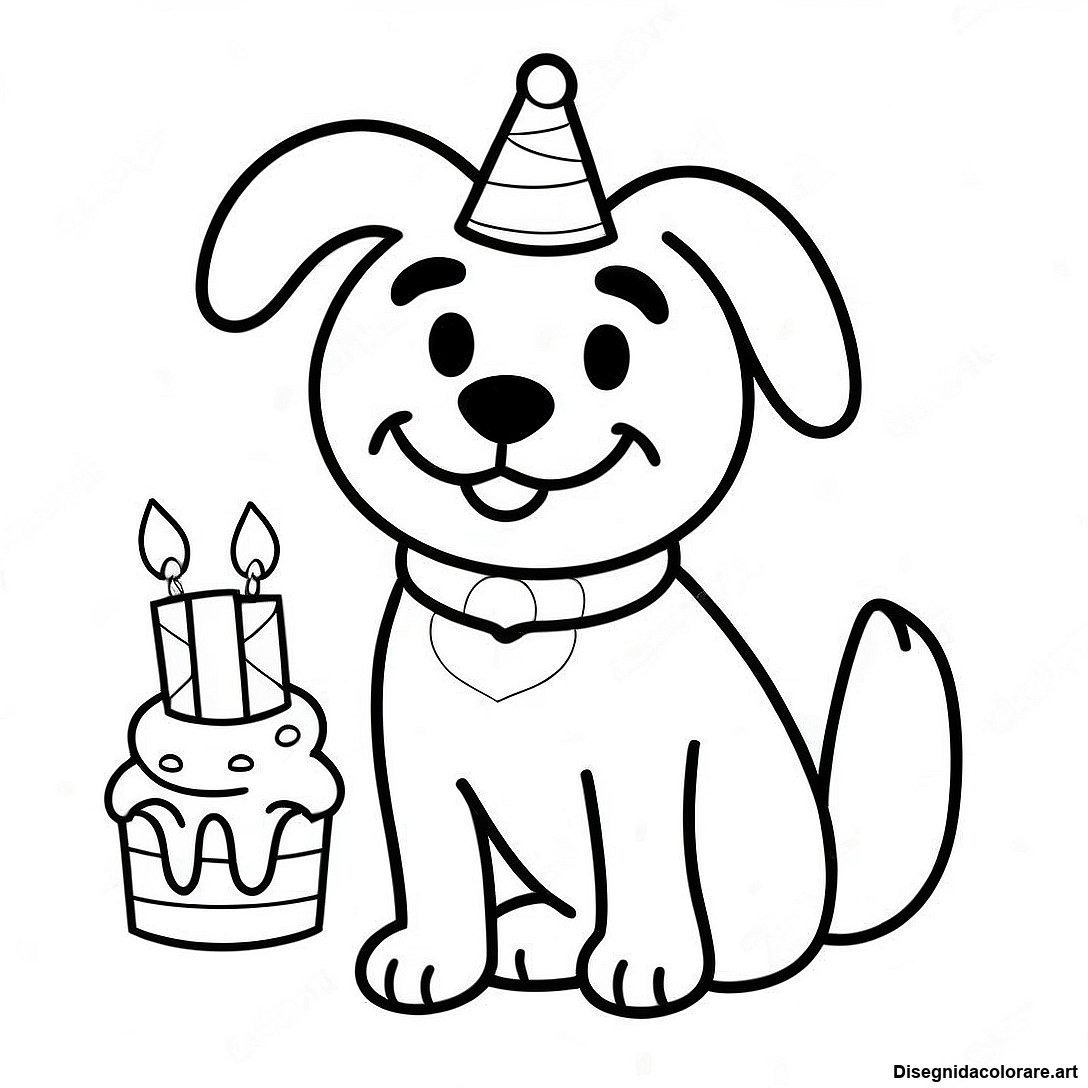 Scarica il PDF Stampabile di Pagina Da Colorare Del Compleanno Del Cane Felice