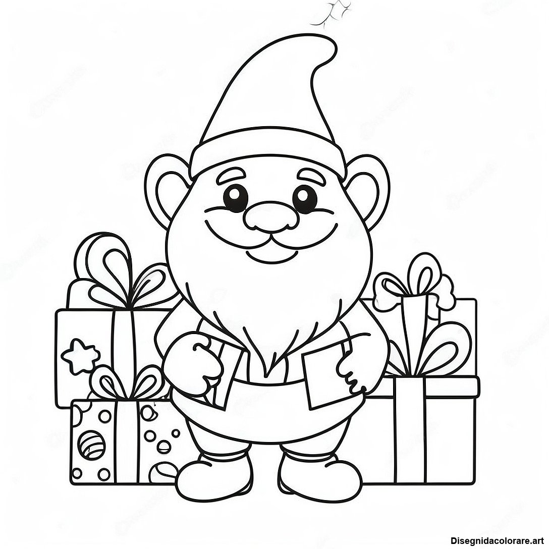 Scarica il PDF Stampabile di Pagina Da Colorare Del Gnomi Di Natale Allegro Con Regali