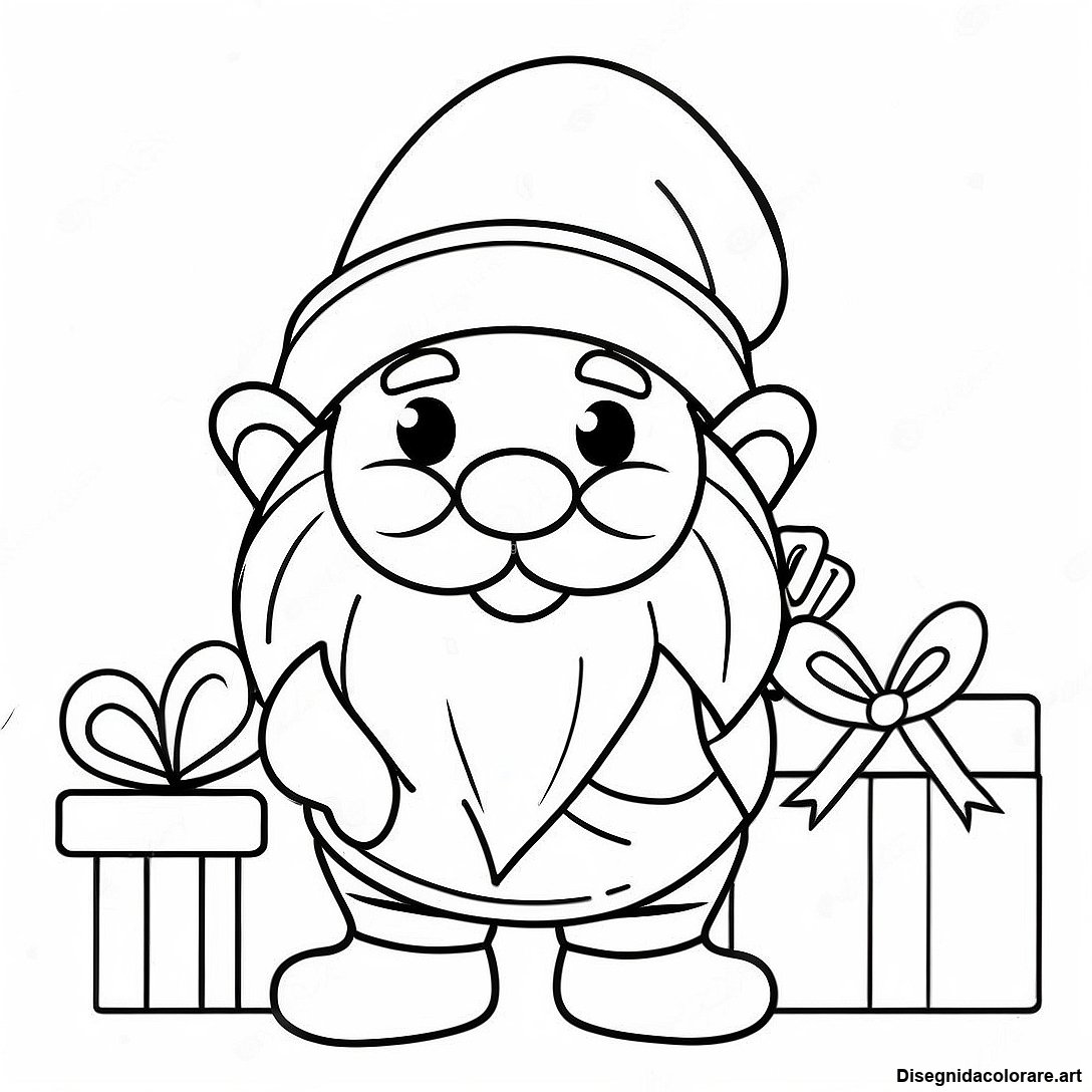 Scarica il PDF Stampabile di Pagina Da Colorare Del Gnomi Di Natale Allegro Con Regali