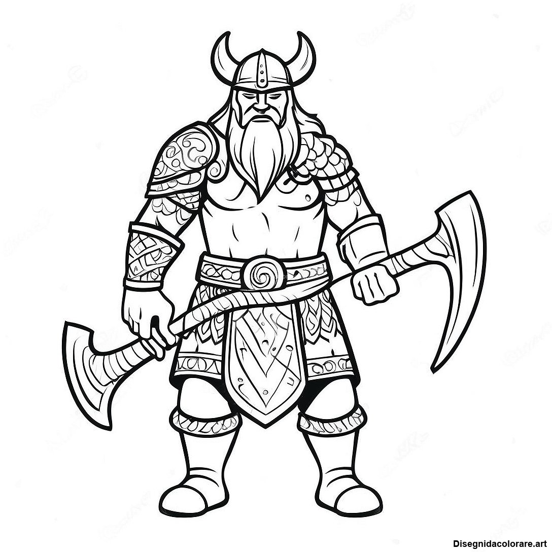 Scarica il PDF Stampabile di Pagina Da Colorare Del Guerriero Vichingo Con Ascia