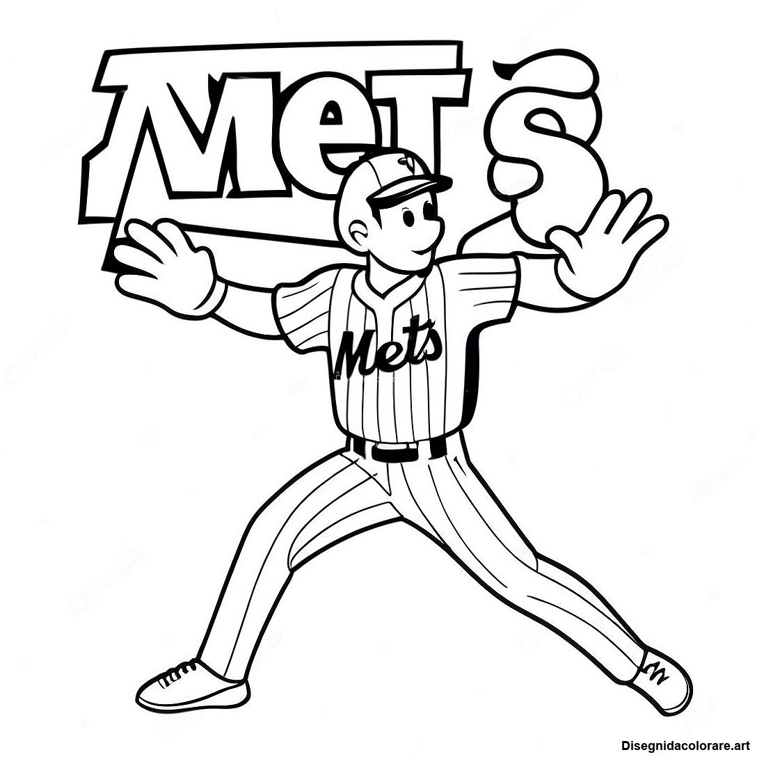 Scarica il PDF Stampabile di Pagina Da Colorare Del Mascotte Dei Mets In Azione