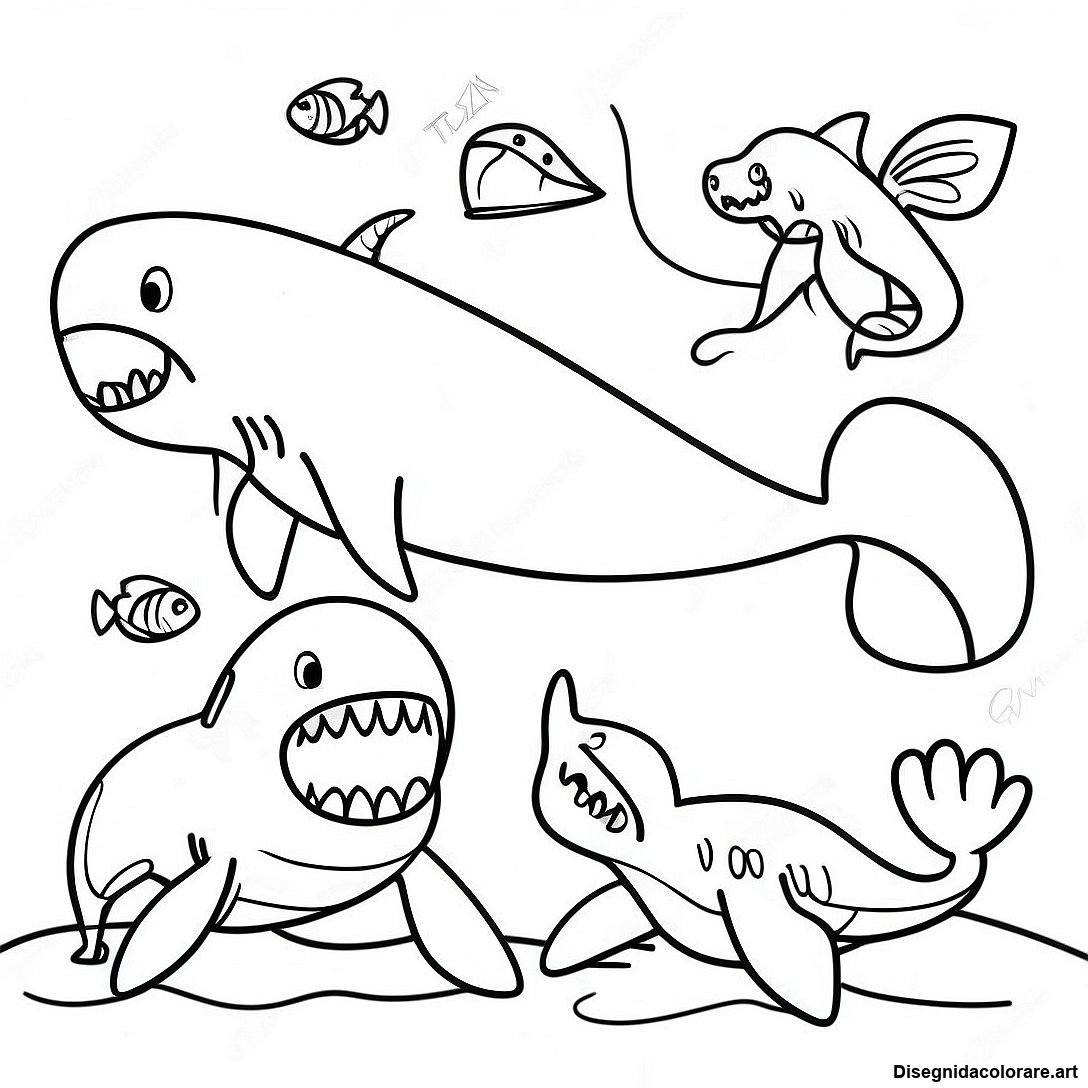 Scarica il PDF Stampabile di Pagina Da Colorare Del Megalodonte Cartone Animato Con Amici