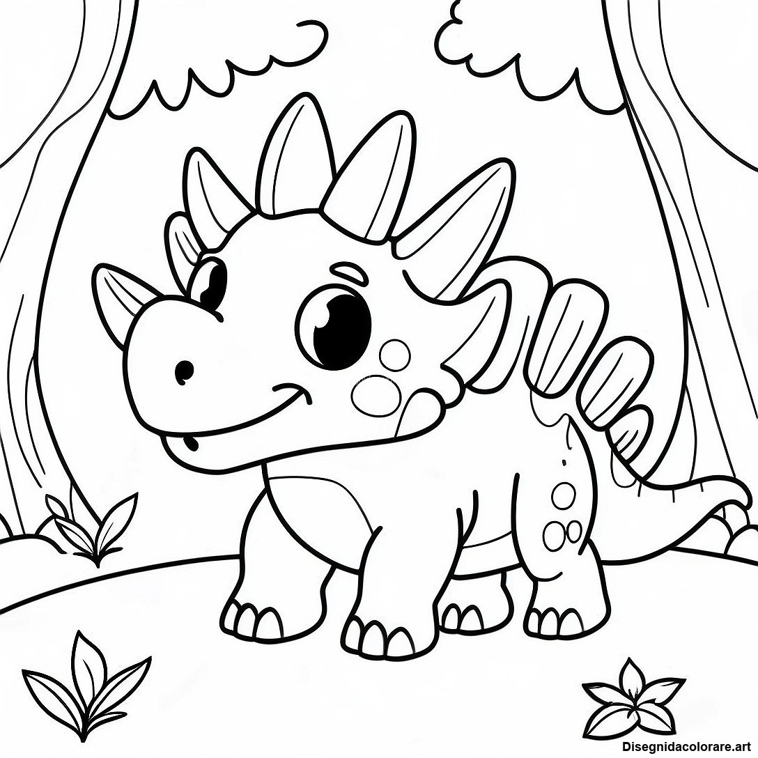 Pagina Da Colorare Del Triceratopo Colorato Nella Foresta 87802 28235