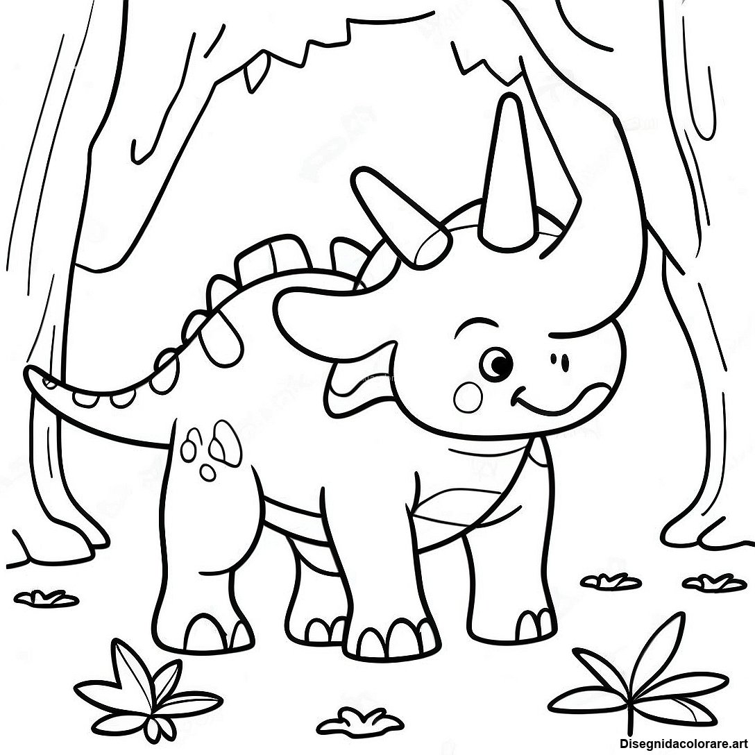 Scarica il PDF Stampabile di Pagina Da Colorare Del Triceratopo Colorato Nella Foresta