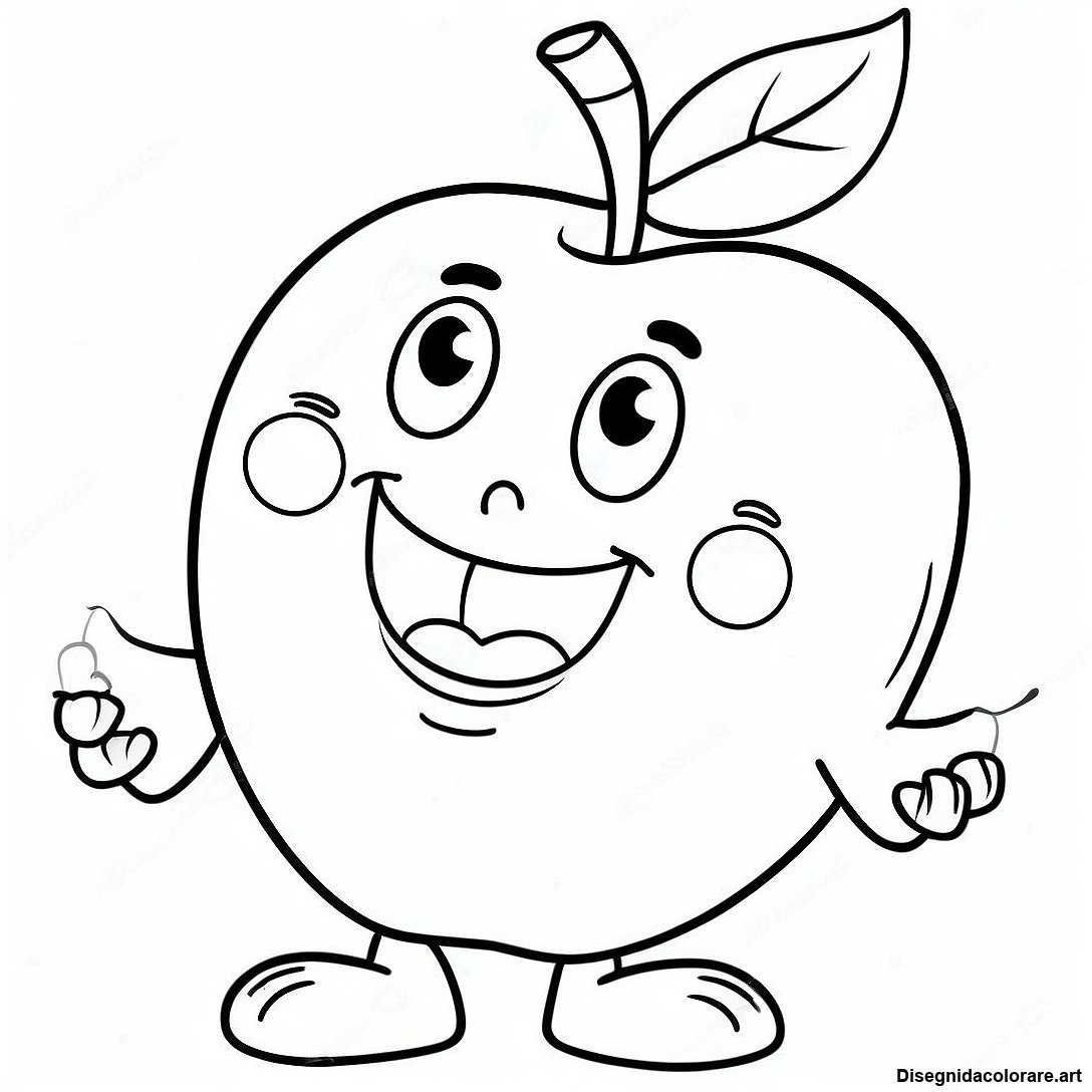 Scarica il PDF Stampabile di Pagina Da Colorare Della Mela Dei Cartoni Con Le Braccia