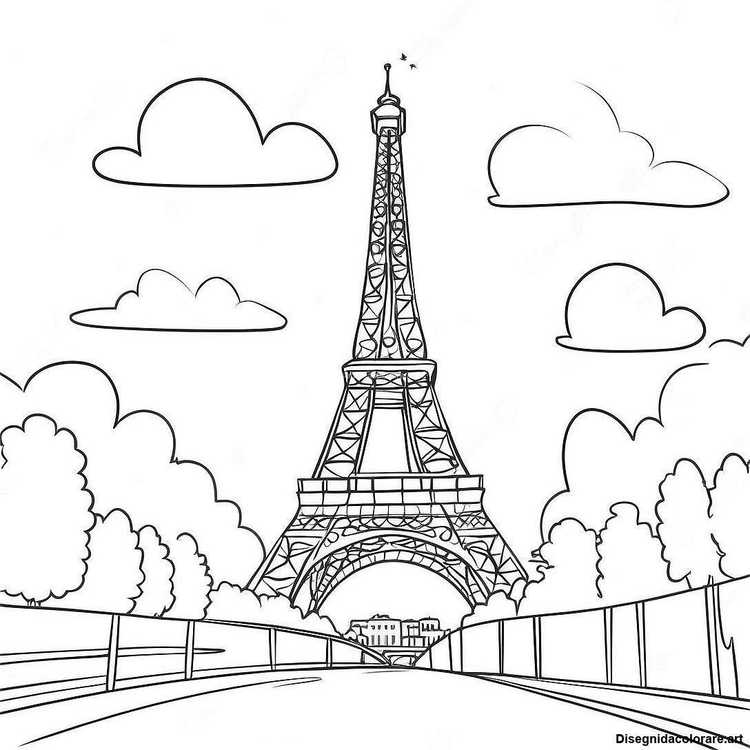 Scarica il PDF Stampabile di Pagina Da Colorare Della Torre Eiffel A Parigi