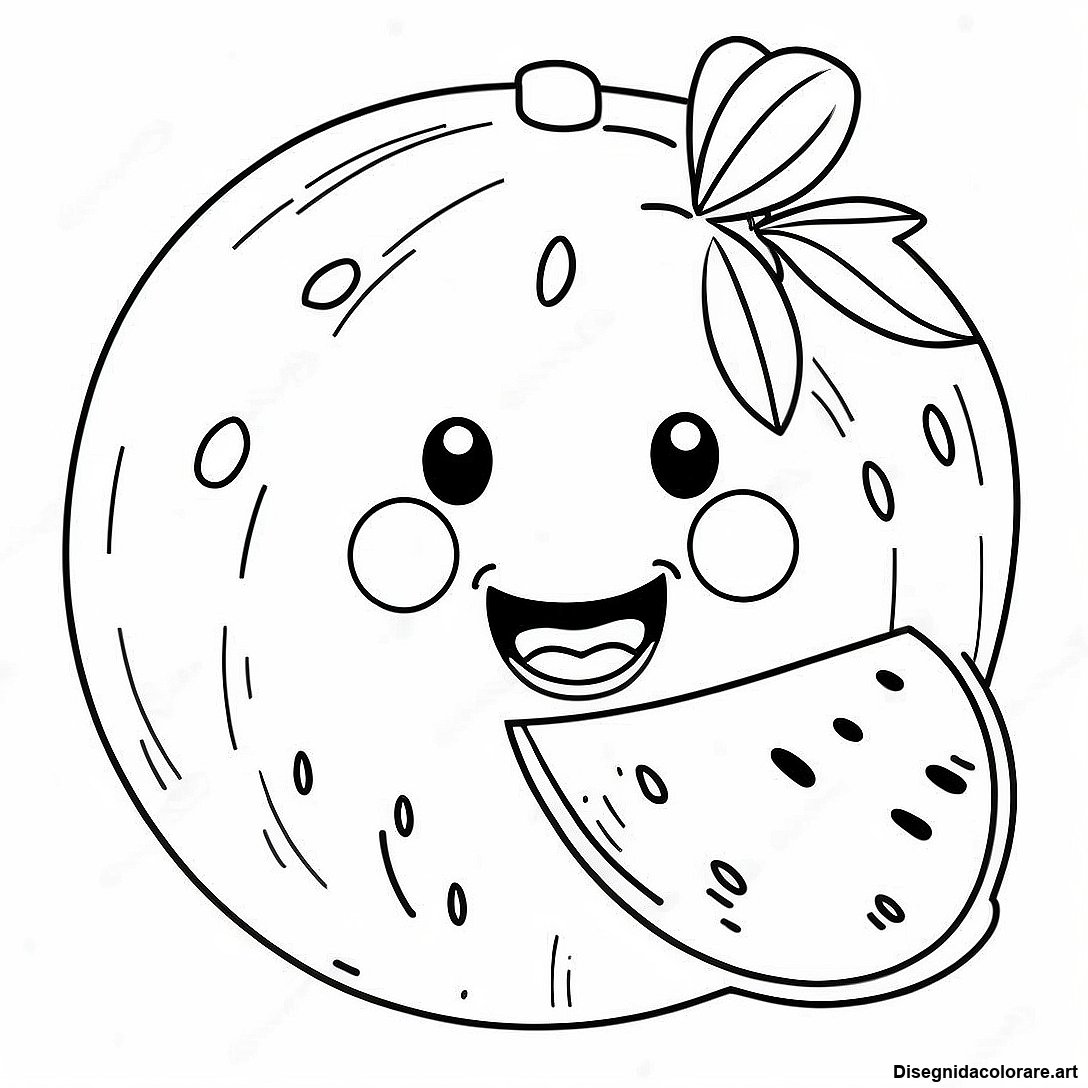 Scarica il PDF Stampabile di Pagina Da Colorare Dell'anguria Carina Con Un Sorriso