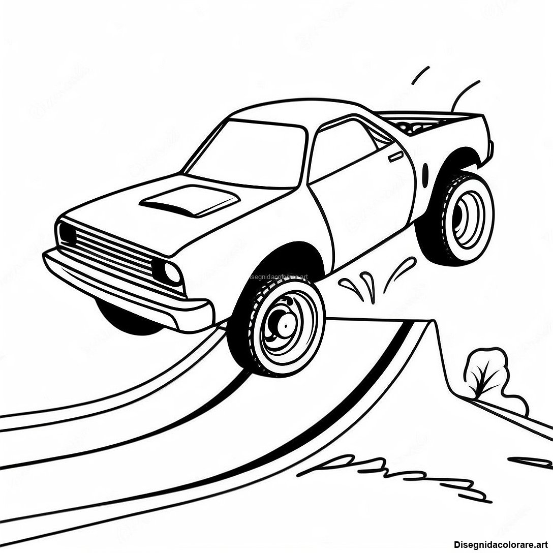 Scarica il PDF Stampabile di Pagina Da Colorare Dell'auto Rc Veloce Che Salta Su Una Rampe