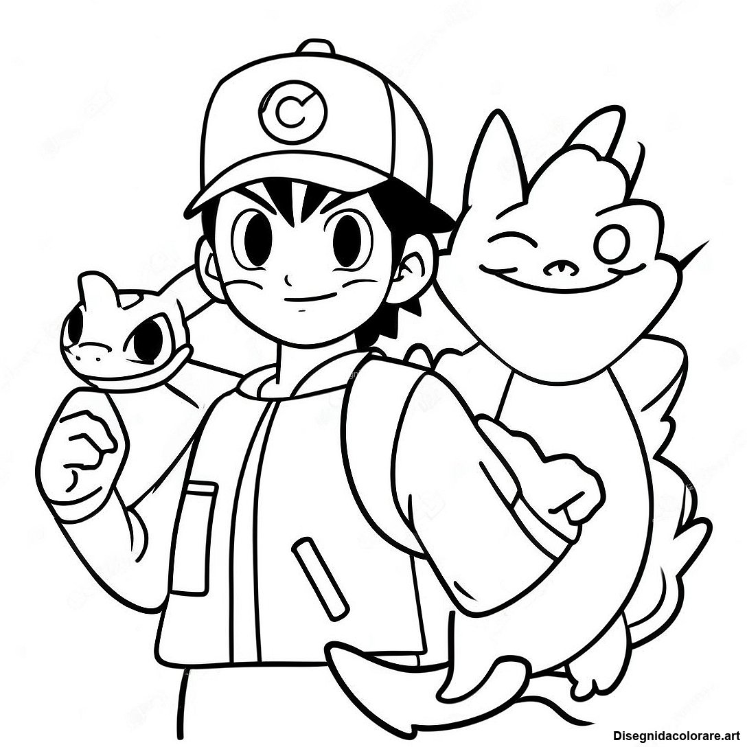 Scarica il PDF Stampabile di Pagina Da Colorare Di Ash Ketchum Con Charizard