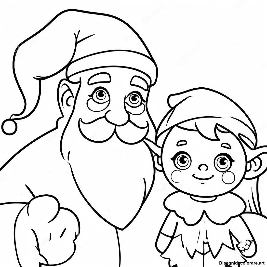 Scarica il PDF Stampabile di Pagina Da Colorare Di Babbo Natale E Elfo