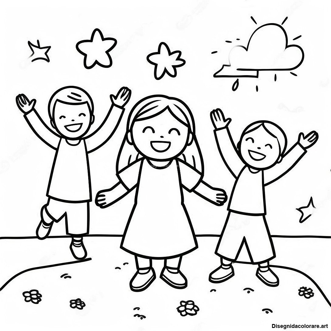 Scarica il PDF Stampabile di Pagina Da Colorare Di Bambini Gioiosi Che Giocano Con Gesù