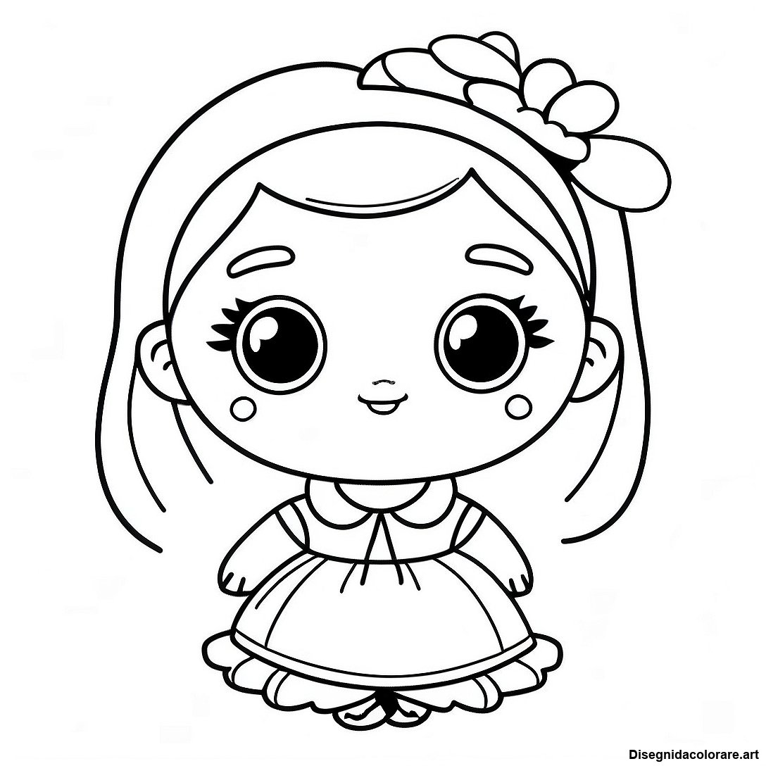 Scarica il PDF Stampabile di Pagina Da Colorare Di Bambola Carina Con Grandi Occhi