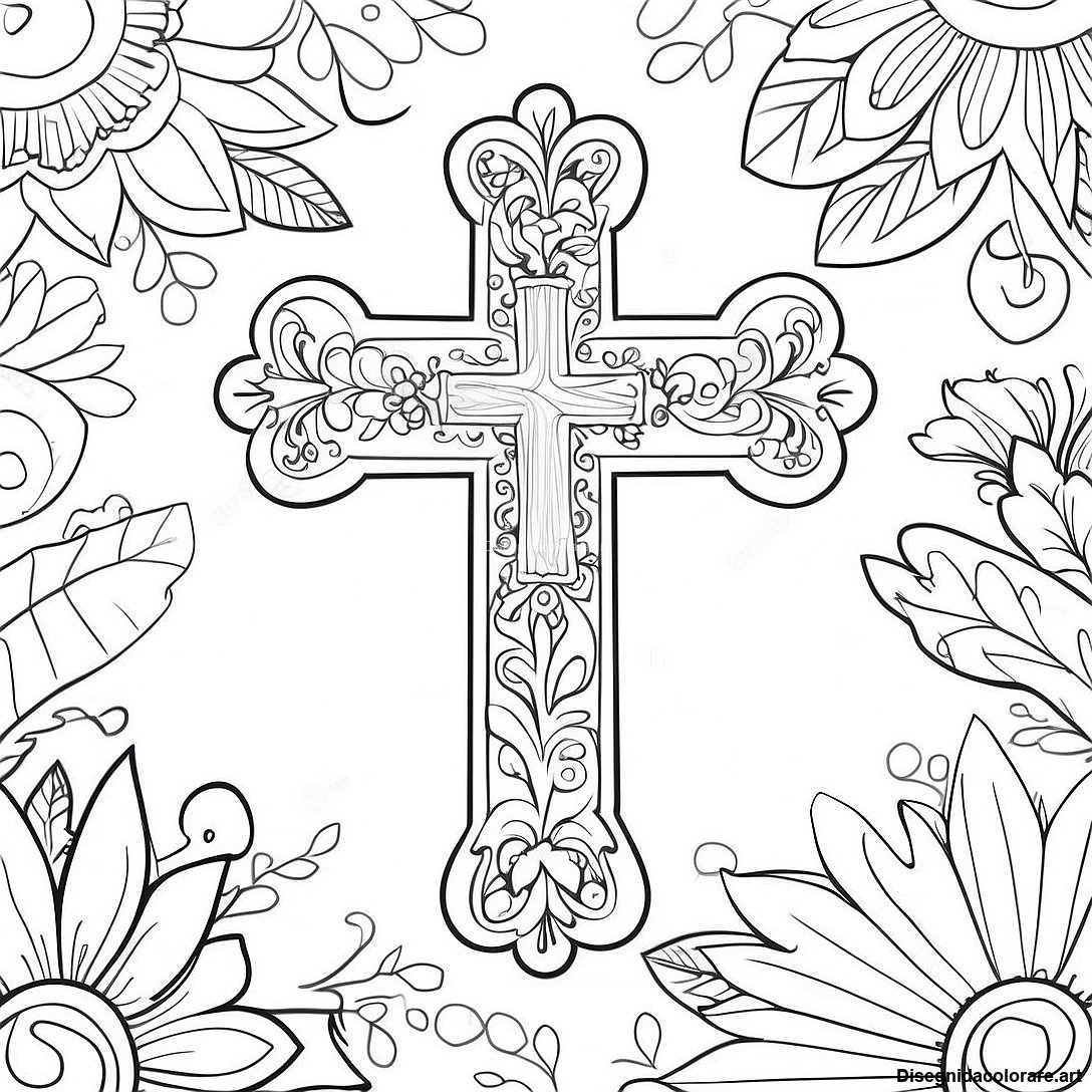 Scarica il PDF Stampabile di Pagina Da Colorare Di Croce Colorata Con Fiori