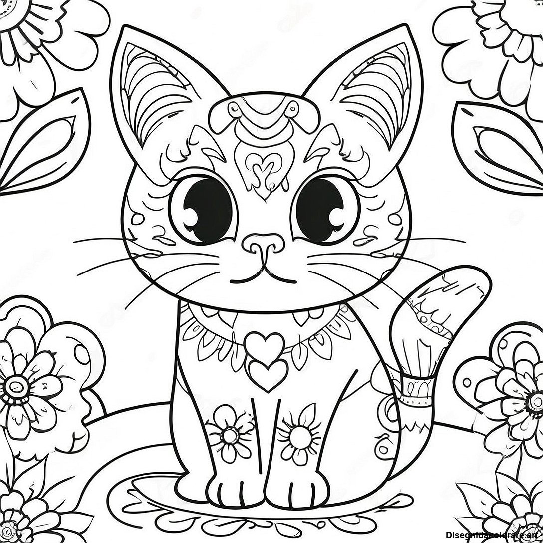 Scarica il PDF Stampabile di Pagina Da Colorare Di Gatto Fantasioso Del Giorno Dei Morti