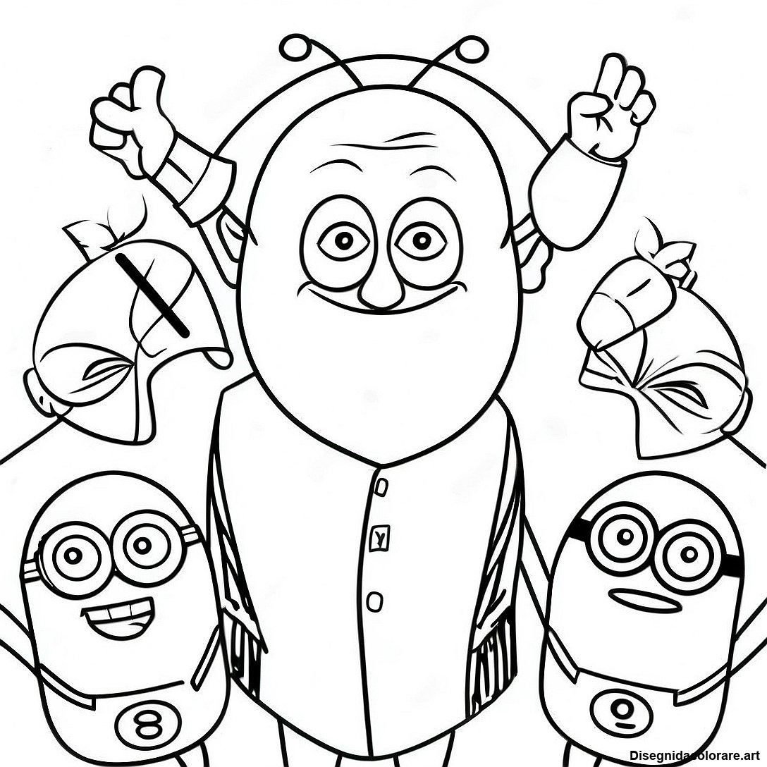 Scarica il PDF Stampabile di Pagina Da Colorare Di Gru Con Minions