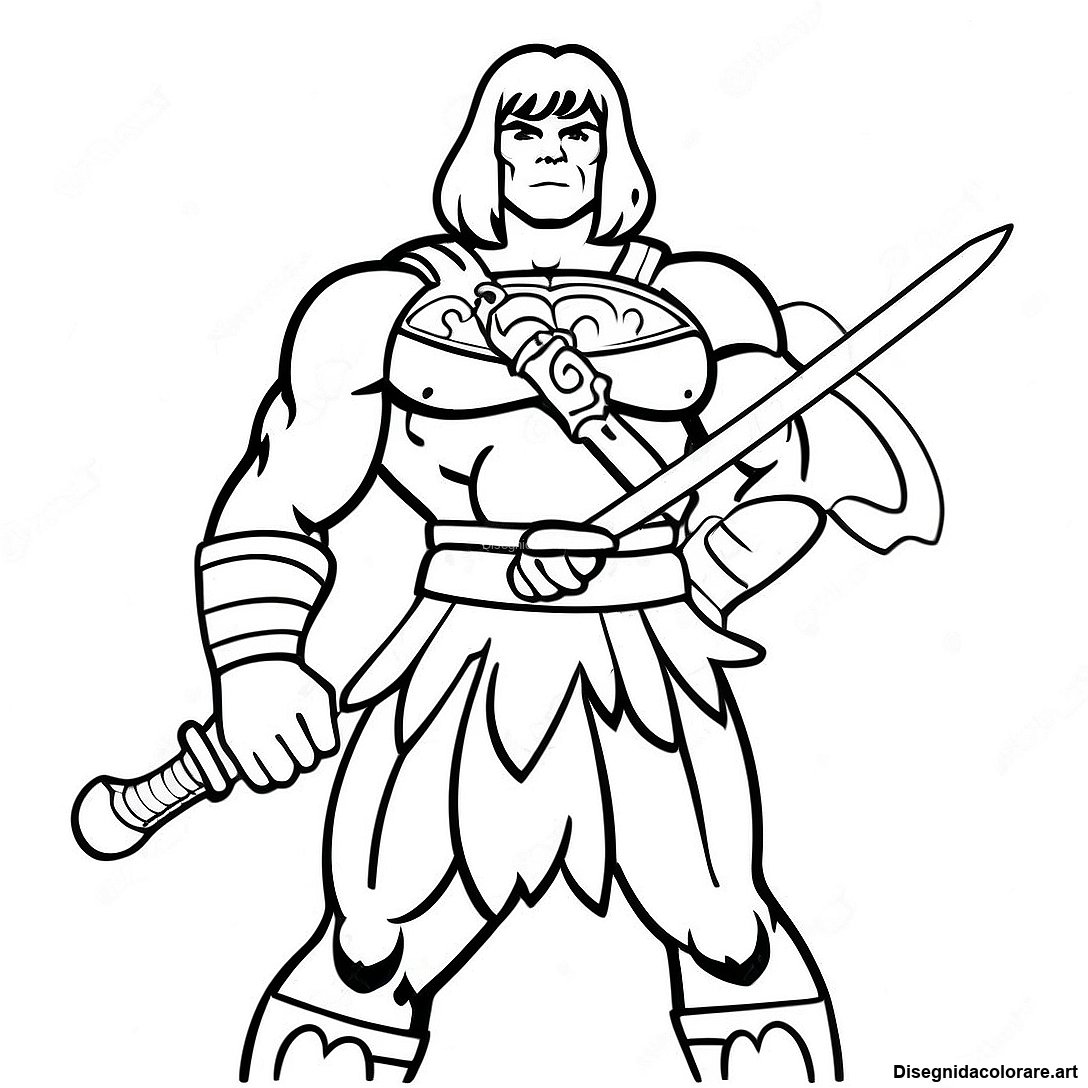 Scarica il PDF Stampabile di Pagina Da Colorare Di He Man Con Spada
