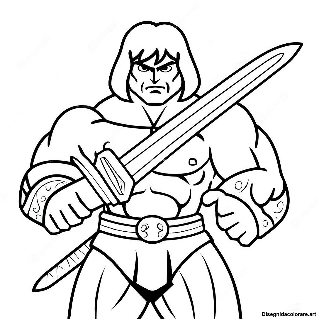 Scarica il PDF Stampabile di Pagina Da Colorare Di He Man Con Spada