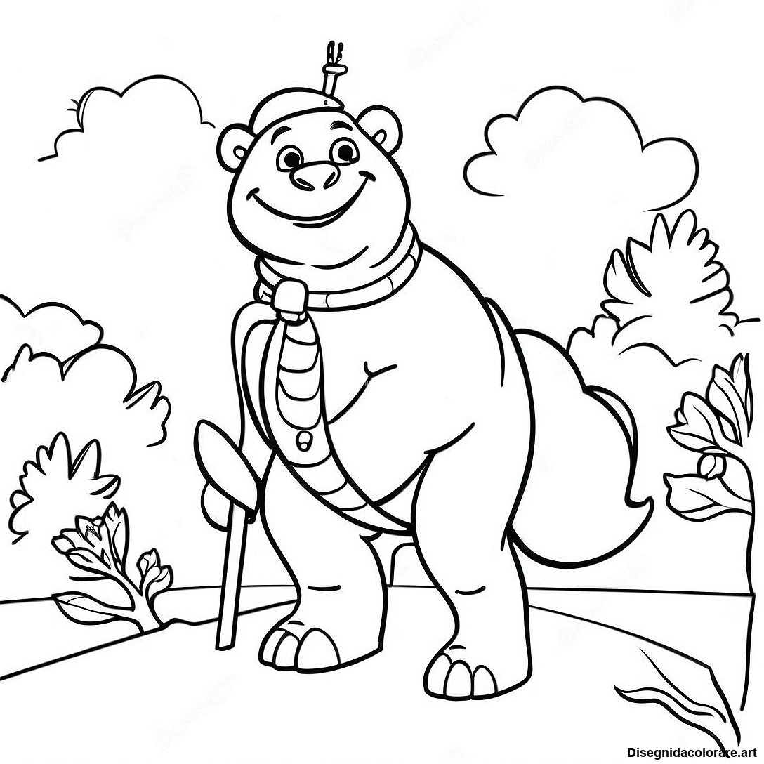 Pagina da colorare del Troll Amichevole con un Grande Sorriso