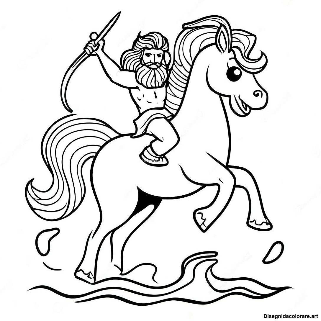 Pagina Da Colorare Di Poseidone Che Cavalca Un Cavalluccio Marino