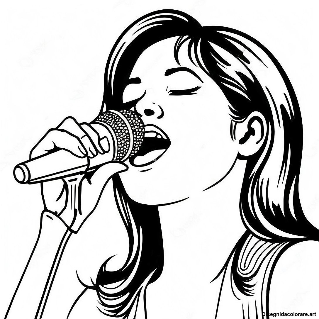 Scarica il PDF Stampabile di Pagina Da Colorare Di Selena Quintanilla Che Canta Sul Palco