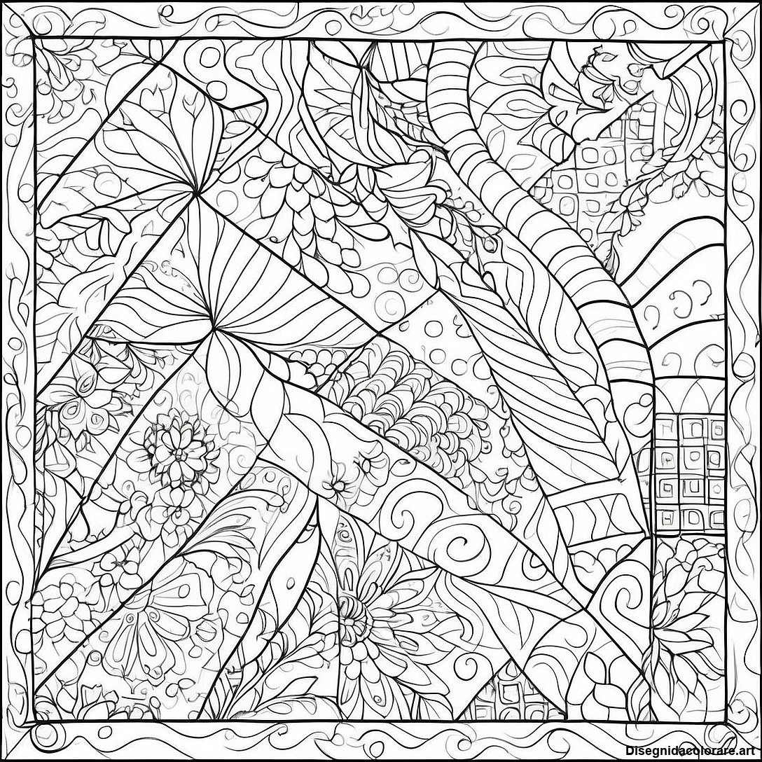 Scarica il PDF Stampabile di Pagina Da Colorare Di Un Copriletto Colorato A Patchwork