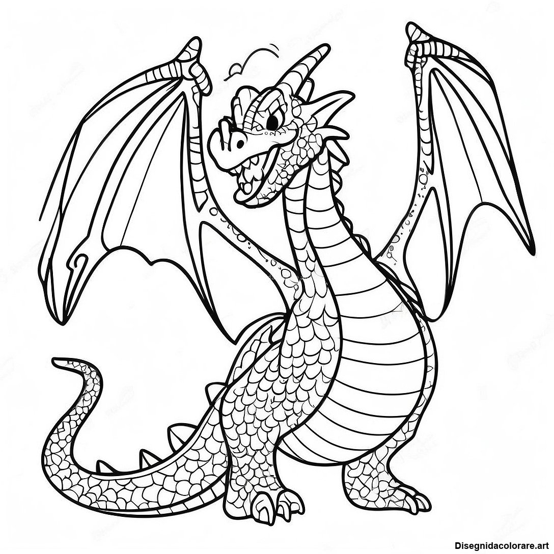 Scarica il PDF Stampabile di Pagina Da Colorare Di Un Drago Sputafuoco