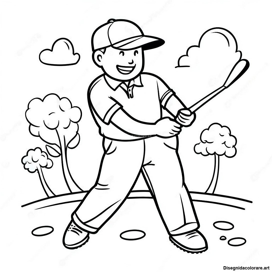 Scarica il PDF Stampabile di Pagina Da Colorare Di Un Golfista Felice Che Swinga Il Bastone