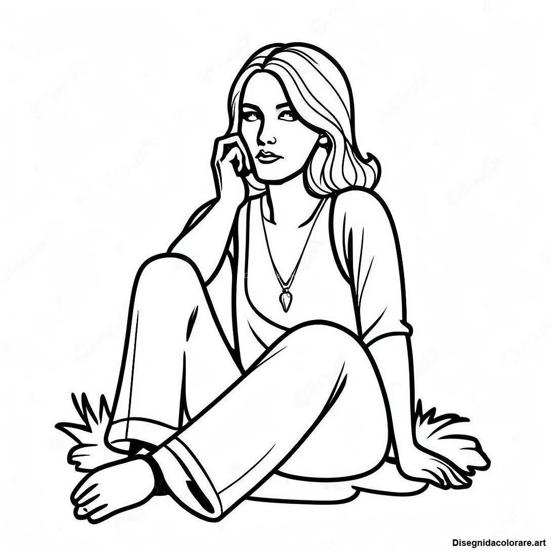 Scarica il PDF Stampabile di Pagina Da Colorare Di Una Donna Pensierosa Seduta