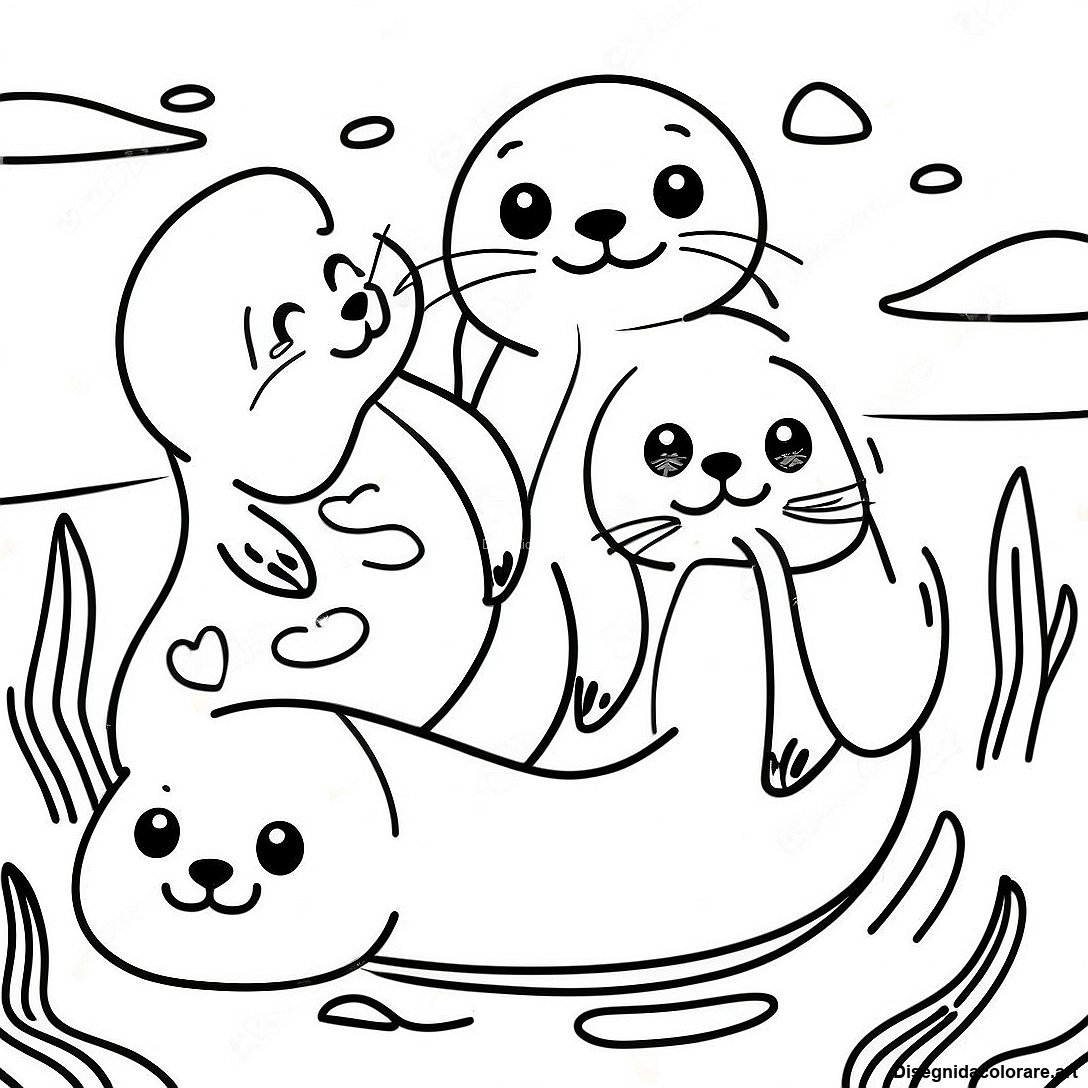 Pagina Da Colorare Di Una Famiglia Di Lontre Di Mare Giocose