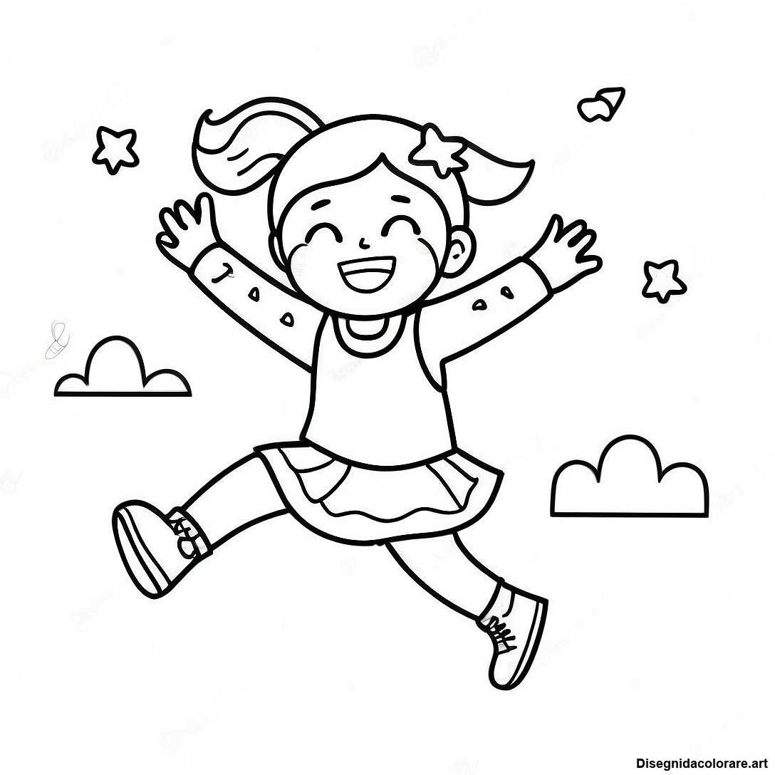 Scarica il PDF Stampabile di Pagina Da Colorare Di Una Ragazza Giocosa Che Salta